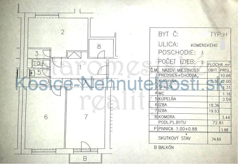 Predaj 2izb. tehlový byt 75 m2 Komenského Košice-Sever